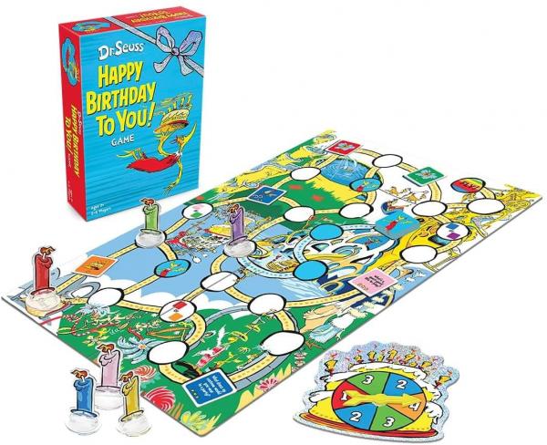 Célébrez ce grand jour à la manière du Dr. Seuss avec Dr. Seuss : Joyeux anniversaire ! , le jeu de société joyeux qui donne vie au monde fantaisiste de Katroo ! Voyagez avec l' Oiseau d'anniversaire , collectez des cadeaux en chemin et assurez-vous d'arriver à l'heure à votre grande fête au Palais d'anniversaire .