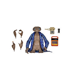 As your friendship with E.T. grows, relive all of his earthly encounters or look to the stars and create your own unforgettable interactive adventures. Ultimate Telepathic E.T. features incredible life-like detail and wears the blue plaid shirt from the home scenes. E.T. stands in 7" scale (meaning the figure is about 4.5" tall) and is posable. Includes Speak & Spell, phone, and TV remote, plus interchangeable necks and hands.