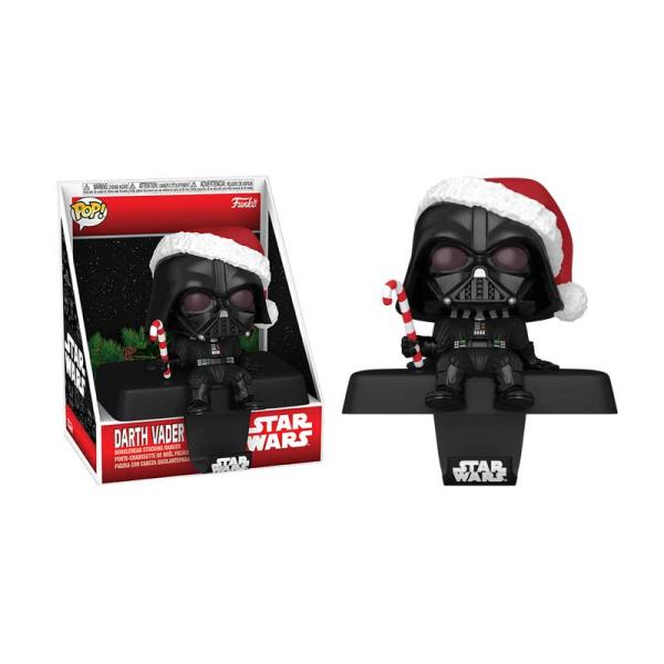 Celebrate the Holiday season with Pop! Stocking Hanger Darth Vader, featuring the Sith Lord in a festive hat and holding a candy cane. This holiday-themed figure is designed to hang stockings while adding Star Wars flair to your décor.