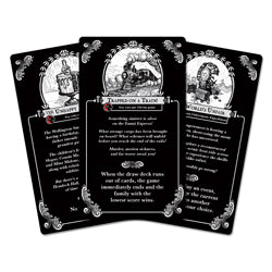 Bring campaign-style play to your Gloom game! Requires core Gloom, but is best played with Gloomier: A Night at Hemlock Hall, Unquiet Dead, Unhappy Homes, Unfortunate Expeditions, and/or Unwelcome Guests Printed on traditional opaque cardstock.