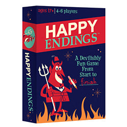 Grab 3-5 of your most fun and least mature friends for a memorable game of Happy Endings! Any answer will do as you fill-in-the-blanks of 150 playful and suggestive sentences. Match players’ answers correctly on your turn and write the favorite answer on everyone else’s turn to score some “amusing” Happy Ending cards and, hopefully, some extra points. The player with the most points after three rounds wins the game!