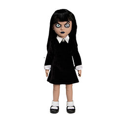 About Sadie: A-trinket a-trasket, Sadie’s escaped her casket! The “First Living Dead Doll” comes dressed in her iconic velveteen dress with satin collar and cuffs, Mary Jane shoes, and has a removable shawl and sunglasses for unfortunate daytime outings or to keep the night extra dark and gloomy. Switch between a grave glare or a sinister smirk with her interchangeable “Death Mask” face plates! Her evil eyes are glass-like and can move by way of controls inside her head.