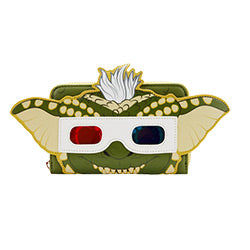 The Funko Pop! by Loungefly Gremlins Stripe Cosplay Wallet is made of vegan leather (polyurethane). Wallet zips closed, has shiny silver-colored metal hardware, and features applique, embroidered, printed, and glow-in-the-dark details. Take note of the coordinating pattern of the inside lining fabric.