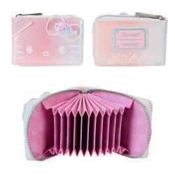 Guess who’s clearly sweet with a bow that’s neat! Break out the confetti to celebrate Hello Kitty’s 50th anniversary. This shiny pink iridescent cosplay wallet is full of surprises. And speaking of confetti…Hello Kitty’s clear bow at the top is filled with heart-shaped colorful confetti. Her applique ears stick up over the top, and her features are brought to life in white embroidered detail. On the back, frosted printed images of some of Hello Kitty’s favorite things appear, including a bow, a teddy bear, an apple, and more surprises. Inside, you’ll find several slots for holding cards or your ID. Secure your valuables for the day and celebrate in style.
