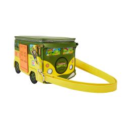 Introducing the Loungefly Nickelodeon TMNT 40th ann Party Wagon Figural Crossbody Bag!- metallic faux leather- spinning wheels- light up headlights- PVC windows- silver foil, applique, debossed, printed details10x6x6