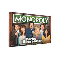 Revisit the unpredictability of working for the city in this ultimate game for Parks and Rec fans! MONOPOLY®: Parks and Recreation takes players through the trials of enhancing properties as they buy, sell, and trade memorable locations from the irreverent TV comedy, such as Lot 48, The Pawnee Zoo, and more. Travel the board with custom tokens of show objects, including Dukes saxophone, Little Sebastian, or Child Size soda, to build Local Parks and National Parks. Be the last public servant to maintain your budget and bankrupt the others to win!