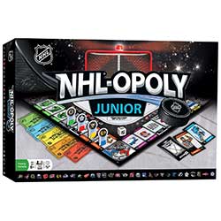 Puck drop! Choose from all 31 NHL® teams to create your custom playing piece with our reusable, static-cling stickers. Just peel and stick the logo stickers of your favorite teams, and you’re ready to hit the ice! Get ready for NHL Face-Off™, collect key positions, equipment, and players as you go around the board. Make trades during NHL Scouting CombineTM and NHL Draft™, and collect groups of the same color to earn more money. Just be sure to avoid the Penalty Box! Go to the Stanley Cup® Final and win big with NHL®-OPOLY JUNIOR!