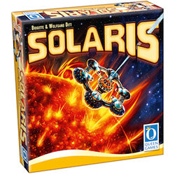 Space stations equipped with high-performance solar panels called Solaris circle red giants and send the generated energy directly to the earth using the new laser and wormhole technology. In this science-fiction space game designed by Brigitte and Wolfgang Ditt players try to solar mine the suns of other galaxies.