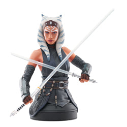 A Gentle Giant Ltd. Release! The moment you've been waiting for has arrived! Gentle Giant Ltd. is ready to offerthis mini-bust of Ahsoka Tano from the second season of The Mandalorian. Depicting her with her twin lightsabers crossed and at the ready, this approximately 7" tall mini-bust features detailed sculpting & paint applications and comes packaged with a certificate of authenticity in a full-color box. Limited to only 3000 pieces. Designed by The Silva Bros., sculpted by the artisans of Gentle Giant Ltd